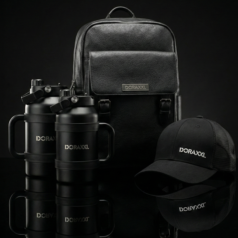 Stay fueled and focused all day with the DORAXXL PowerHydra Gallon Bottle. your ultimate hydration partner. Built with a rugged, matte black finish and bold branding, this 1-gallon jug is...