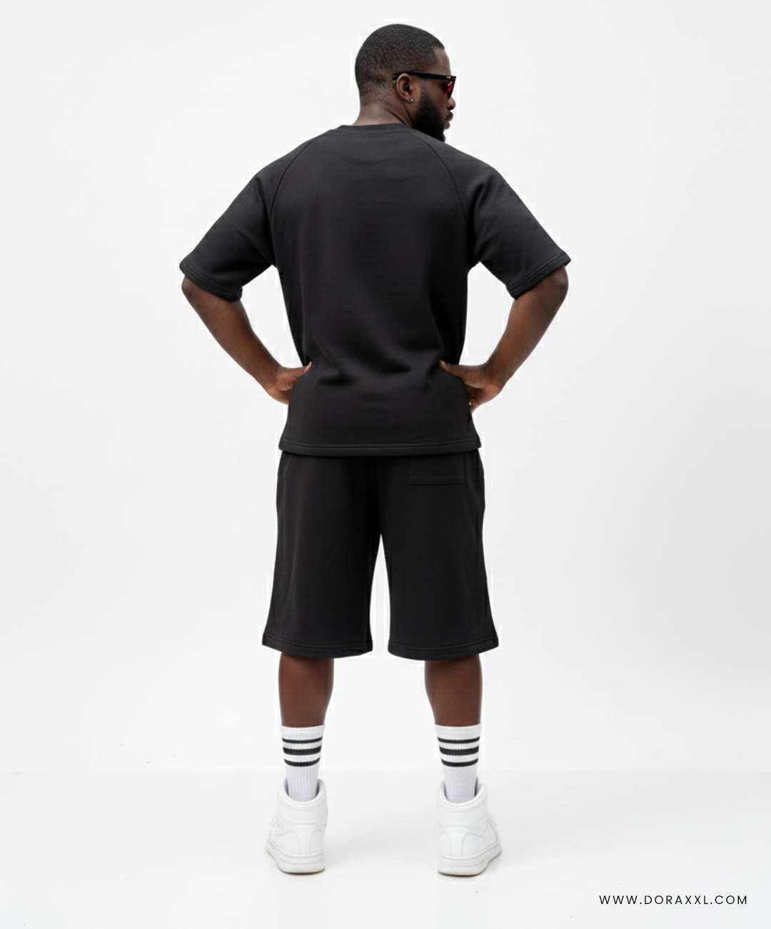 Fit: Boxy top with drop shoulders and knee-length shorts